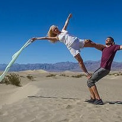 My son & I doing acro yoga in Death Valley at 103-degrees.